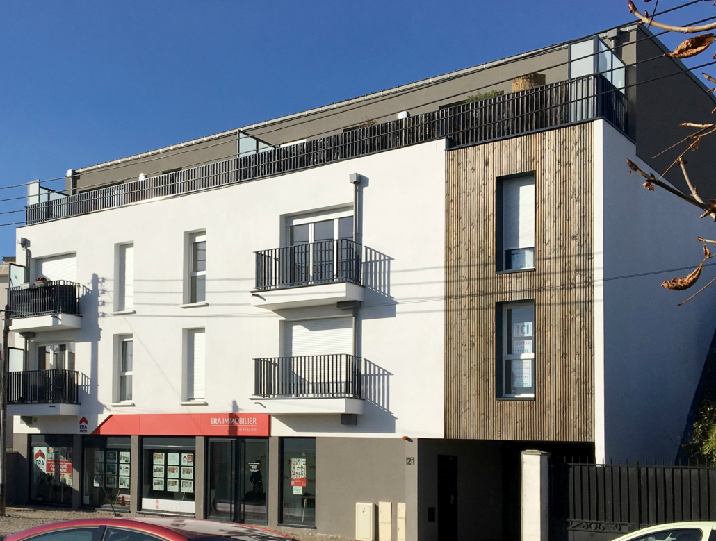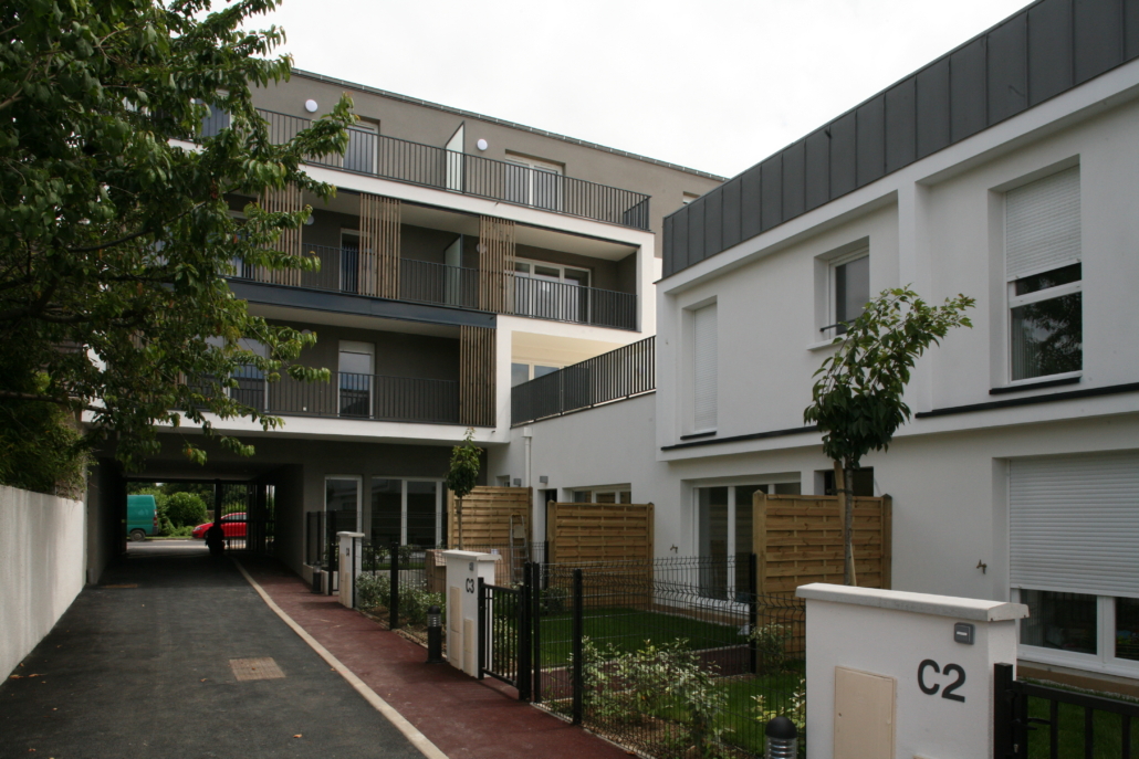 Dans un premier temps, un immeuble de trois niveaux habitables sur un rez-de-chaussée réservé à de l’activité est implanté sur la rue Aristide Briand, il créé la façade principale de l’opération et intègre un passage cocher menant au cœur de l’îlot.